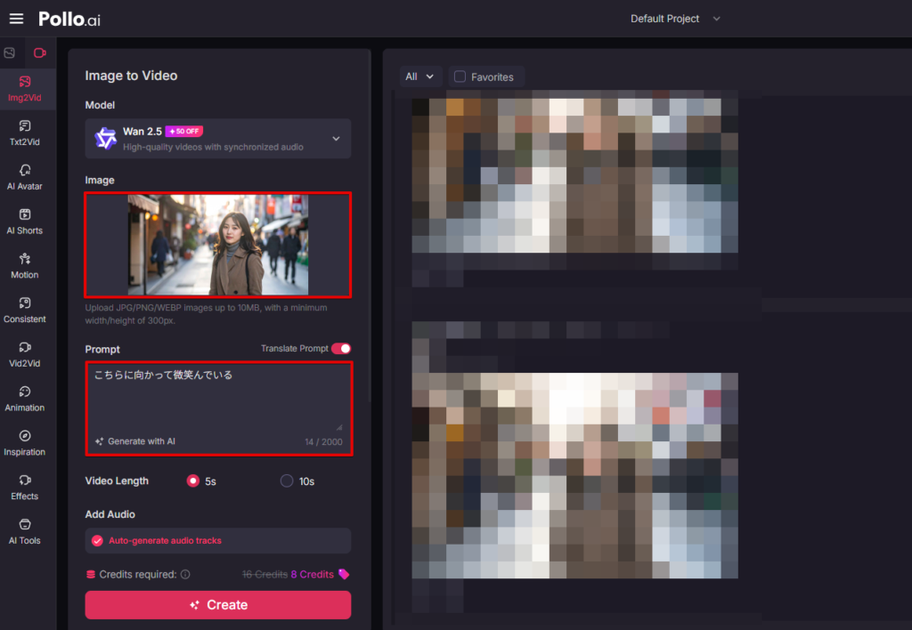 PolloAIの以下の機能で画像を動かすっていうことをやってみました。