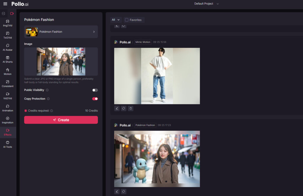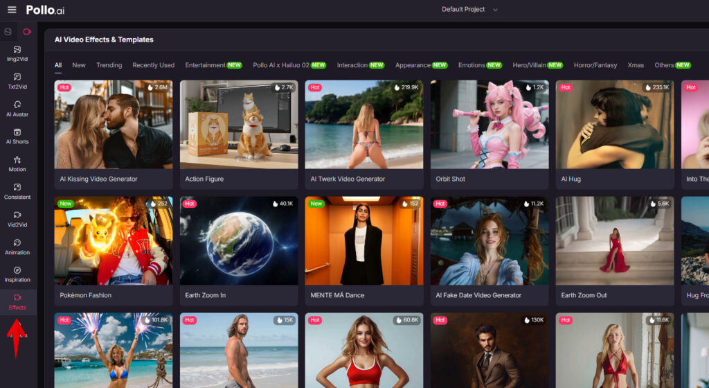 PolloAIにはたくさんのエフェクトのテンプレートがあるので、決まった動きをさせたい場合便利です。