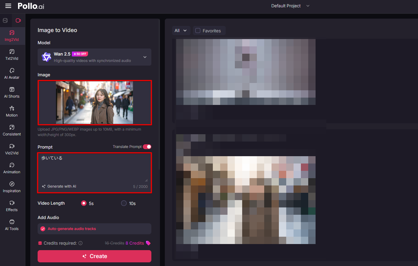 PolloAIの以下の機能で画像を動かすっていうことをやってみました。